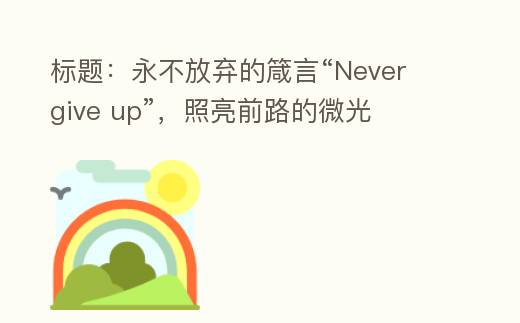 在当代快节奏且充满挑战的生活中,永不放弃的信念显得尤为珍贵,无论是学业上的瓶颈,事业上的挫折,还是个人生活中的失意,我们都很容易感到疲惫与怀疑,此时,“Never give up”如同一座灯塔,提醒我们困境往往是暂时的,而放弃则意味着永远失去了可能性,它教导我们,真正的失败并非没有达到目标,而是在距离目标仅一步之遥时选择了转身,每一次坚持,都是对自我极限的一次挑战与拓展,都是在为未来的成功积蓄力量。